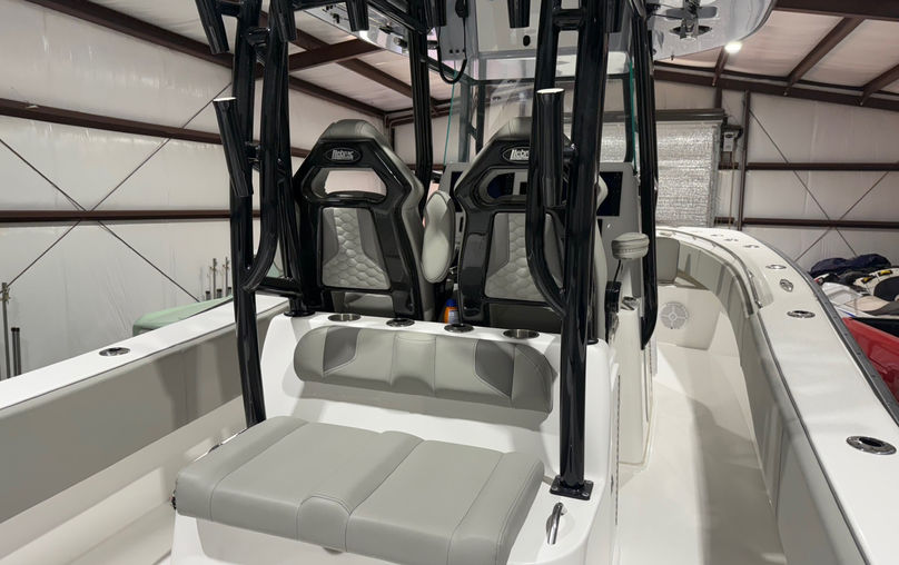 At over 35’ in length our design delivers a ride quality in dryness that can only be achieved with today’s modern technology. An unrivaled length to beam ratio makes running 100 miles offshore a pleasure. Getting there quickly is what its built for. An oversized hardtop provides a sleek and modern design. The large box above provides plenty of storage for all your gear. All will appreciate a host of lighting options, (6) flush mounted speakers and standard telescoping outriggers.