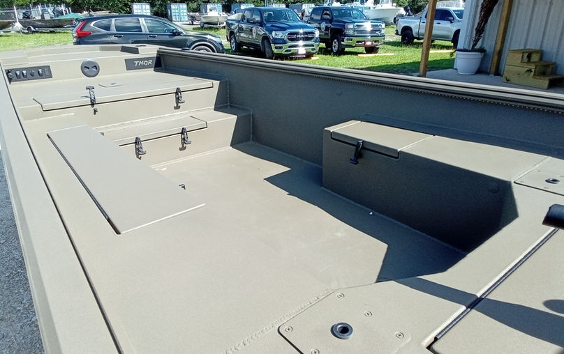 The new THOR Timber Hammer 1754 packs all of the great features of the original LH1754 with one major addition: THOR’s exclusive Lightning Rail Keel. This proprietary keel extrusion not only adds tremendous strength and durability to the already legendary Anvil Hull design, but it also makes the TH1754 the most nimble tiller boat in the Lake Hammer Series lineup. Perfect for dodging trees or running twisting trails through the cattails. The new TH1754 – The toughest, most agile Hammer in the swamp.